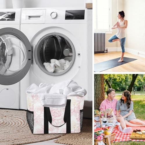 Elegant Rose Reusable Grocery Bags Large Tote Bag Waterproof Canvas Organizer for Beach Picnic Laundry Travel 5