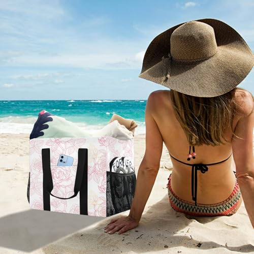 Elegant Rose Reusable Grocery Bags Large Tote Bag Waterproof Canvas Organizer for Beach Picnic Laundry Travel 4