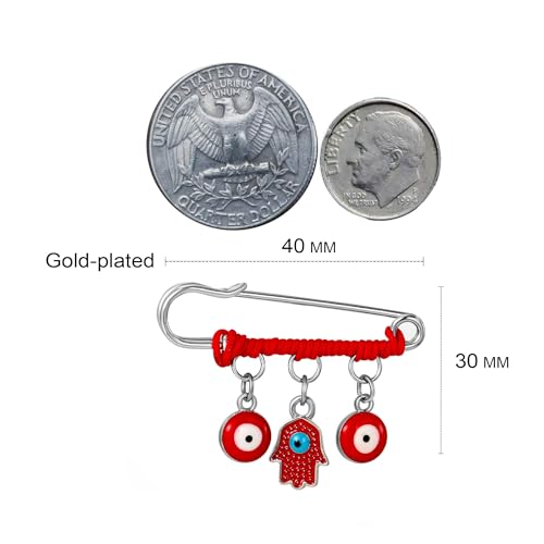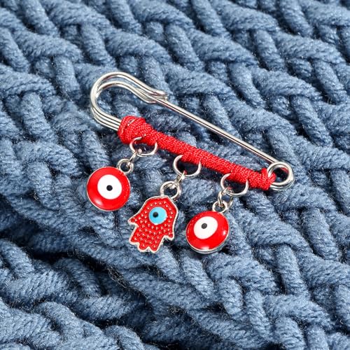 Red Hamsa Protection Charm Pin - Evil Eye Jewelry for Women, Babies, Infants & Toddlers - Evil Eye & Hamsa Symbolism Pin - Red String Amulet for Good Luck & Energy - Fits Stroller and Blanket - 1.5 cm