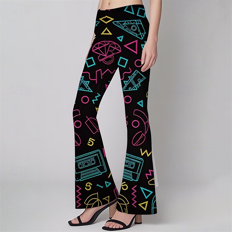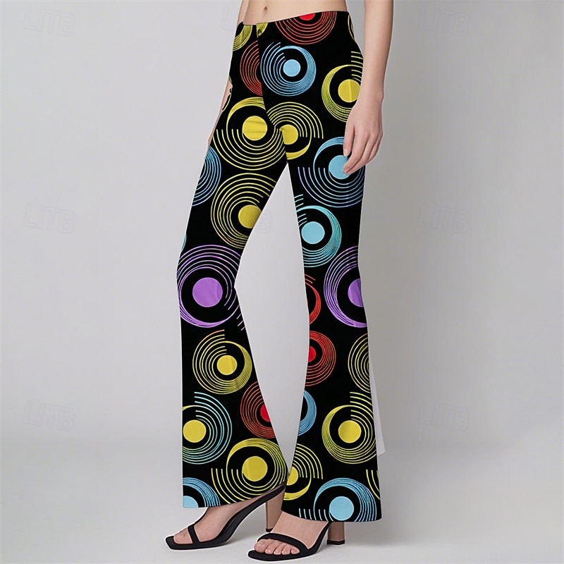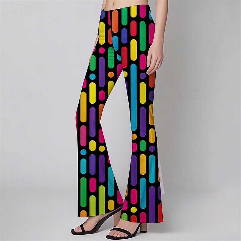 Retro Vintage 1970s Groovy Bell Bottoms Pants Flare Leggings Flared Trousers Hippie Disco High Waist Geometic Psychedelic Fancy Dress Women's Halloween Carnival Vacation Music Festival Festival 2