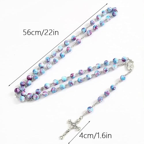 Rosary Beads Catholic for Woman, Handmade Imitation Blue Purple Pearl Rosary Necklace, First Communion Gifts, Wall Crosses Christian Gifts 6