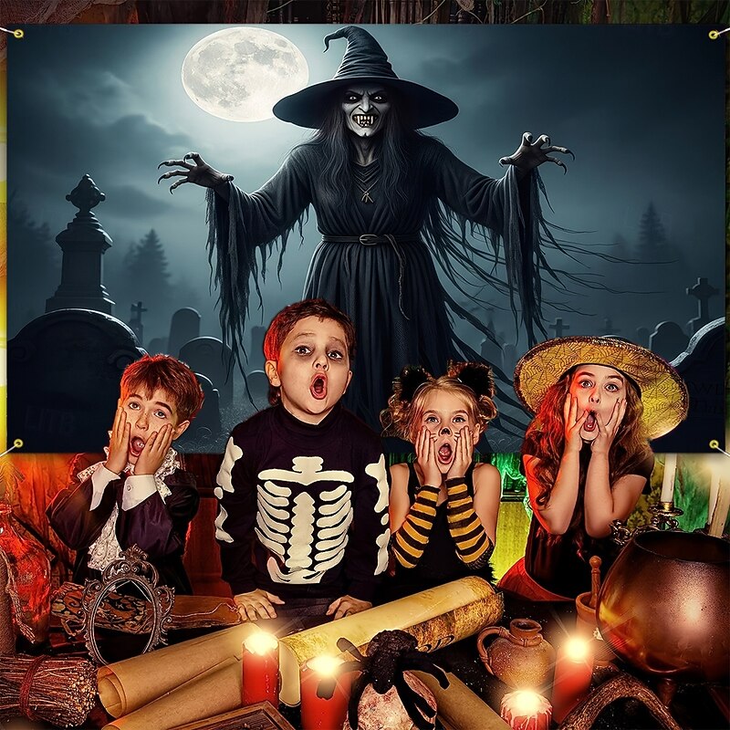 Why Choose Halloween Tapestry Banners Wall Hangings Skeleton Witch Dark Punk Gothic Style Party Dorm Shooting Backgrounds Home Decor?