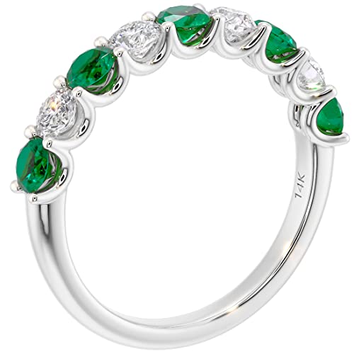 PEORA Solid 14K Gold 1 Carat Lab Grown Diamond and Created Emerald 9-Stone Half Eternity Band for Women, Wedding Anniversary Stackable Ring, Sizes 4 to 10 5