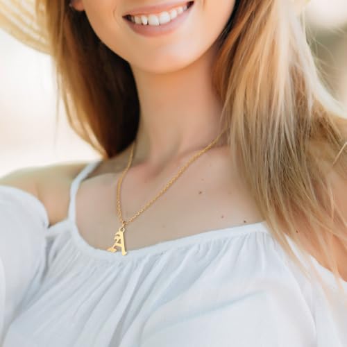 Letter Necklaces for Women Personalized Necklaces 18K Gold Plated Initial Pendant Old English Name Necklaces A-Z Bridesmaid Gift for Girls 4