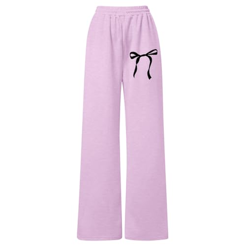 Girls Sweatpants Bowknot Straight Leg Athletic Baggy Pants Lightweight Comfy Cute Clothes Teen Lounge Joggers