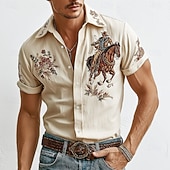 More information about Men's Floral Print Cowboy Flowers Shirt Western Shirt Short Sleeve Vintage Retro Outdoor Vacation Summer Spring Turndown 3D Print Collared Shirts Linen Like Shirt Apricot