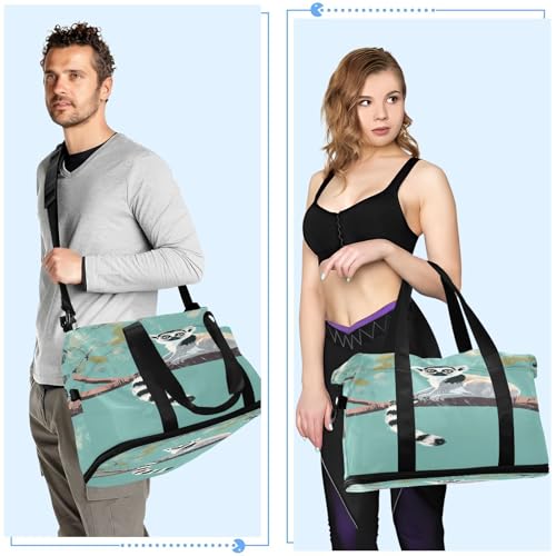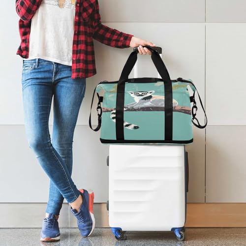 HOT ! Ring-tailed Lemur Branch Teal Travel Duffel Bag for Women Men Gym Bag with Shoe Compartment Wet Pocket Carry On Weekender Overnight Bags for Travel Hospital Gym