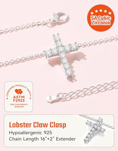 • Cross Necklace for Girls: This Cross Necklace for Women features a delicate Sterling Silver Cross Pendant adorned with dazzling 5A Cubic Zirconia, offering a diamond-like brilliance. Carry a radiant blessing with you, sparkling with faith and grace. Not for children under 3 years old.