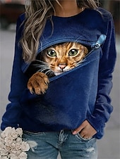 More information about Women's Pullover Sweatshirt Hoodies Graphic Animal Cat Fashion Casual Long Sleeve Crew Neck Round Neck Regular Tops Street Dailywear Print Black Dark Blue Spring Fall Winter