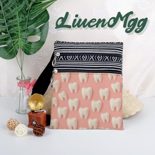 Cartoon Teeth Messenger Bag Small Ethnic Pattern Printed Adjustable Strap Crossbody Zipper Bag Cartoon Teeth Phone Bag Wallet Cute Shoulder Handbag for Women -3