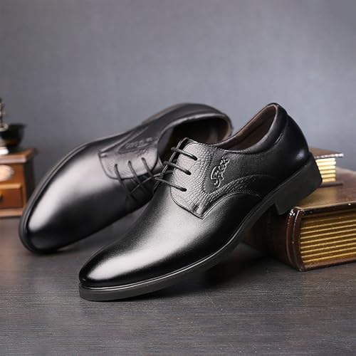Men's Autumn/Winter Plush-Lined Leather Dress Shoes, Classic British Style Pointed Toe Lace-Up Ideal for Business Occasions, Perfect for Gentlemen 6