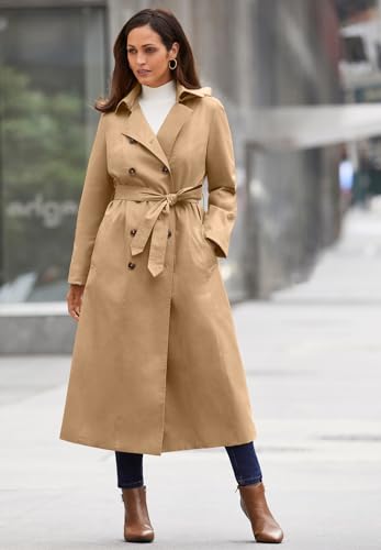Jessica London Women's Plus Size Double Breasted Long Trench Raincoat 4
