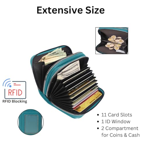 NGIL Small Zippered Faux Leather Wallet for Women, Accordion-Style Card Slot Women Wallet, RFID Blocking Credit Card Holder Wallet, Card Cases & Money Organizers (Blue) 6