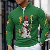 More information about Christmas Men's Snowman Novelty Polo Long Sleeve Polo Shirts Grandad Collar Casual Holiday Daily Wear Festival Outfit 3D Print Quarter Zip Polo Spring Fall Winter Red Green