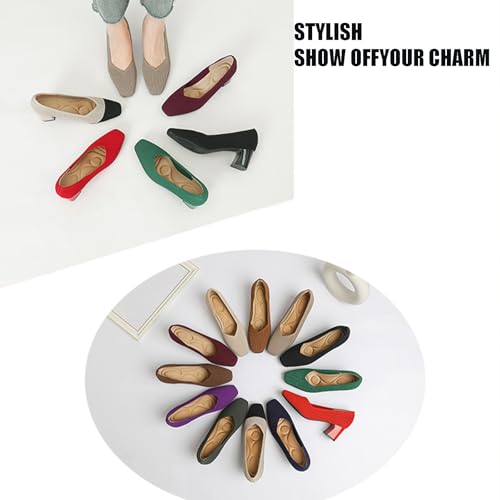 sought-after ! Women's Knit Square Toe Chunky Heel Dress Pump Mesh Breathable Slip On Mid Block Heel Formal Business Office Shoes Daily Non-Slip plush Casual Shoes