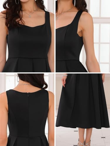 Women's Cocktail Dress Sleeveless Square Neck A-Line Pleated 50s Vintage Maxi Dress 4