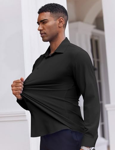 COOFANDY Long Sleeve Shirts for Men Business Casual Shirt Stretch Wrinkle Free Untucked Dress Shirt Black 6