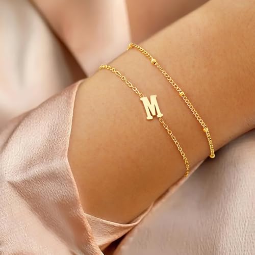 BAYLAY Gold Initial Bracelet for Women Trendy Jewelry - 18K Gold Plated Layered Letter Bracelet Dainty Gold Initial Charm Bracelet for Women Jewelry Gifts 1