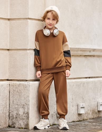 Arshiner Boy Clothes 2 Piece Color Block Sweatshirt and Pants Set Fall Winter Outfit for Toddler and Kids 2-9 Years 1