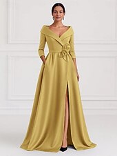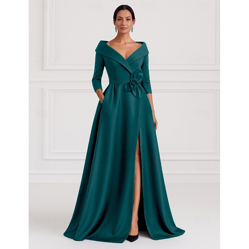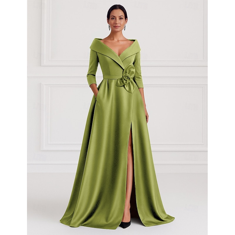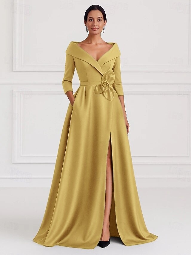 $144.99 - Black Gold A-Line Evening Gown Elegant Gown Formal Wedding Guest Floor Length 3/4 Length Sleeve Shirt Collar Pocket Stretch Satin with Shouder Flower 2025. Shop for cheap A-Line Evening Dresses online? Buy at lightinthebox.com on sale today!