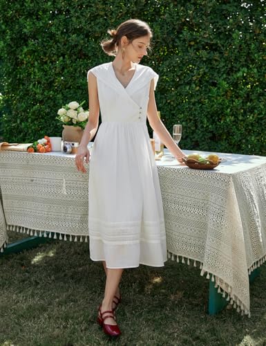 Why Choose Women's White Cotton Boho Embroidered Eyelet Midi Dress, Sailor Collar Sleeveless Summer Casual Beach Vacation Dress?
