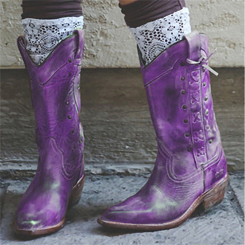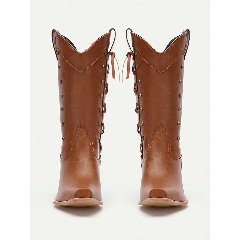 Why Choose Women's Vintage Brown Leather Knee-High Cowboy Boots - Western Style with Distressed Finish?