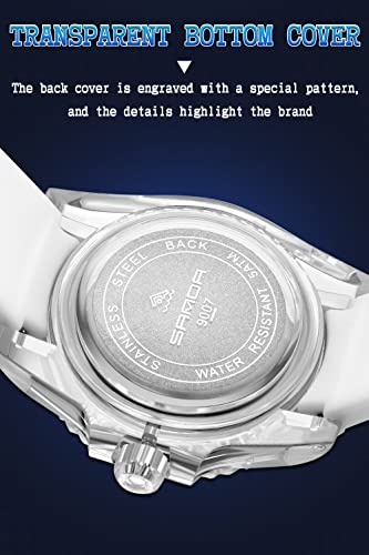 Clasp type: BuckleItem type name: Sport Watch☁ Outdoor Sport Watch ☁ —— Transparent case with rotatable feature. The perfect combination of fashion and classic. Made of ultra-light and high-quality materials. Wearing it for a long time will not feel tired. The perfect partner for outdoor sports.☁ Material ☁ —— The acrylic mirror surface is clear and transparent. So reading time is fast and convenient. Transparent ABS case, sturdy and durable. With a soft and breathable silicone strap. Friendly to skin and comfortable to wear.☁ Luminous ☁ —— The scale and hand are covered with luminous material. Absorb the light source according to the sunshine duration. The longer the light source is absorbed, the more obvious the luminous effect will be at night.☁ Movement ☁ —— Equip with high-quality Japanese quartz movement, with accurate time, stable performance and durability. The service life is relatively long. and the quality is reassuring.☁ Perfect Gift ☁ —— On birthdays, Christmas, Thanksgiving or other important days, it is suitable packaging into a wonderful gift for your friends, colleagues, leaders, family, lovers. You can also send yourself such a exquisite gift. It will be a perfect gift.☁ 30M Waterproof ☁ —— The water resistance is 30M (3ATM). Water resistance is suitable for daily use and can withstand daily splashes or brief immersion in water, but not for swimming and showering, diving or snorkeling. Perfect for everyday use. superior materials and excellent craftsmanship ensure long-lasting durability.