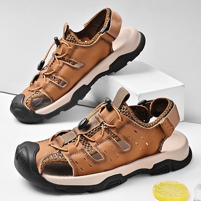 sought-after ! Men's Brown Outdoor Sports Sandals with Adjustable Straps and solid Rubber Sole for Hiking and Beach Activities