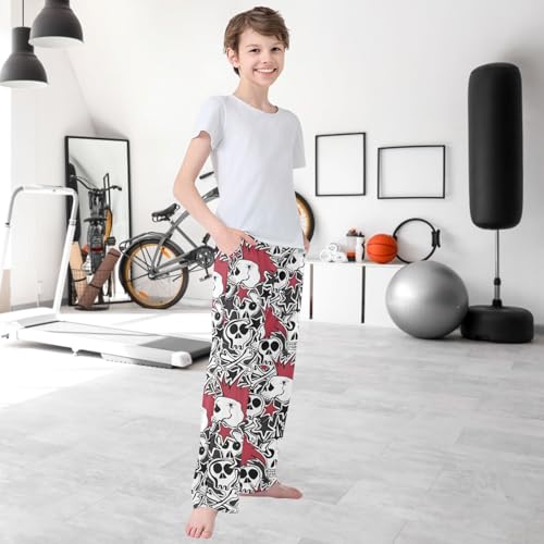 Boy's Pants Skull Guitar Rock Jogger Pants Elastic Waist Long Bottoms Trousers with Pockets 6-14 Years