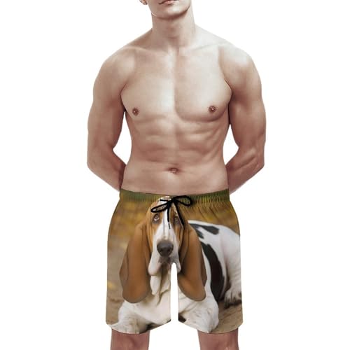 Basset Hound Mens Swim Trunks hasty Dry Hawaii Bathing Suit Board Shorts with Mesh Lining-