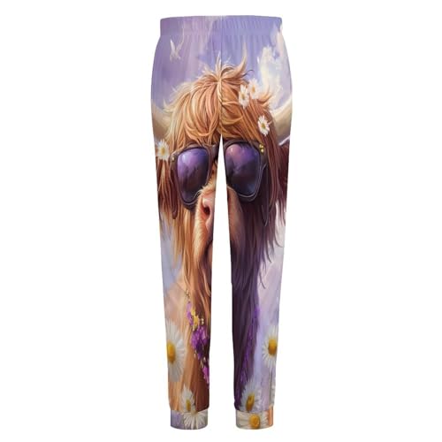 Highland Cow Daisy Flower Men's Pajamas Pants Lightweight Sleep Lounge Pant Pjs Bottoms Casual Sleepwear