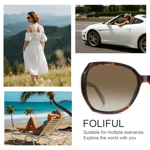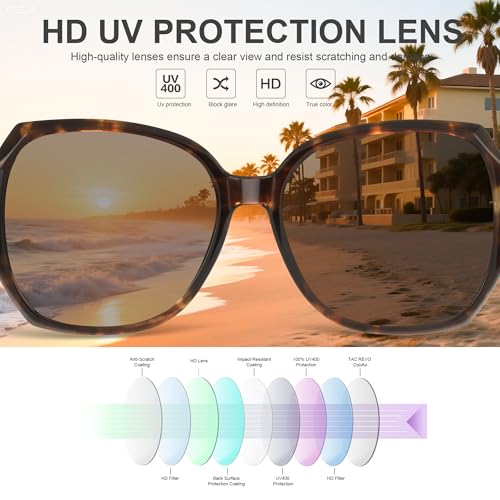 • OVERSIZED SUNGLASSES DESIGN: These women's sunglasses feature a traditional square design that fits all face shapes and easily modifies facial contours. The oversized lenses not only enhance the look, but also provide a wider field of view, making it a good choice for daily commuting, outdoor travel, or fashion street photography.