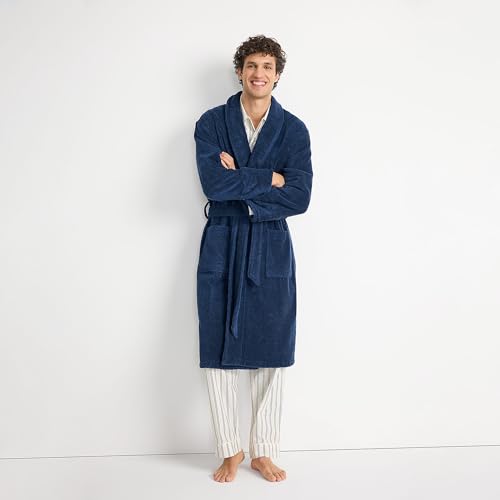 Fabric type: CottonCare instructions: Machine WashOrigin: ImportedPremium Cotton Comfort: Crafted from 14 oz Turkish terry cloth; this plush cotton robe is absorbent and warm after a bath or hot tub; breathable and soft against the skin; ideal for cool mornings or relaxing spa days; machine washable for everyday useFunctional Design: Shawl collar adds a timeless spa robe feel; wraparound style with adjustable kimono belt closure for a no-gap fit; long sleeves offer full coverage and cozy warmth; calf-length cut makes it a perfect housecoat for menLounge-Ready Fit: Designed for comfort without bulk; great for layering over pajamas or sleepwear; the ideal cotton robe for winding down at night or stepping out of a steamy shower; also works as a lightweight towel robe alternative in warmer monthsEveryday Versatility: This soft robe for men is perfect for year-round wear; doubles as a shower robe dressing gown or lightweight summer robe; comfortable enough for lounging at home sleek enough to keep by the door or wear poolsideGift-Worthy Robe: Makes an excellent gift for birthdays holidays or anniversaries; a luxury robe for men who appreciate comfort and quality; available in multiple colors and sizes to suit his style—whether he prefers classic white navy or striped Perfect for everyday use. superior materials and excellent craftsmanship ensure long-lasting durability.