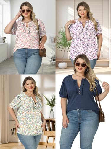 VISLILY Womens-Plus-Size-Summer-Tops Dressy Ruffle V Neck T Shirts Trendy Puff Short Sleeve Tunics Casual Buttons Up Blouses 5