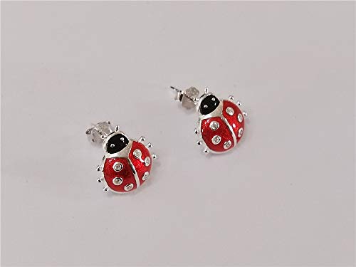 Cute Ladybug Tiny Stud Earrings for Women Girls 925 Sterling Silver Hypoallergenic Dainty Red Bugs Black Head Small Lucky Post Tragus Fashion Animal Jewelry Birthday Christmas Gifts for Daughter