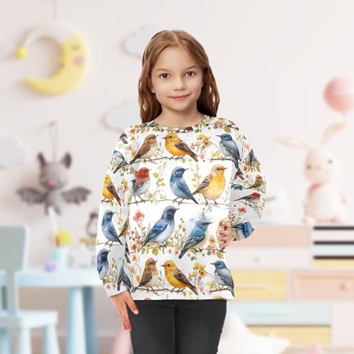 JUNZAN Aesthetic European Starling Birds White Little Kids Sweatshirts Hoodies Long Sleeve Kids Hoodies Boys Athletic 4T