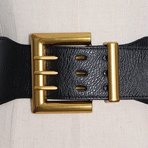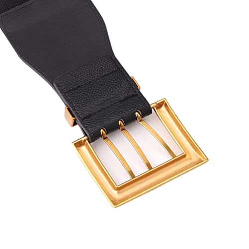 Why Choose 3 Rows Womens Elastic Leather Waist Belt for Dress Wide Stretchy Straps Gold Buckle?