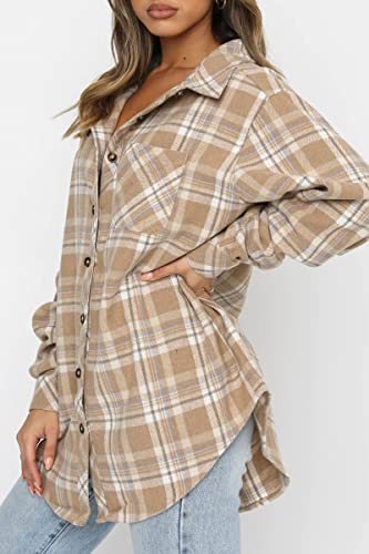CHYRII Women's Casual Flannel Plaid Shacket Button Down Long Sleeve Shirt Jacket Coats 1