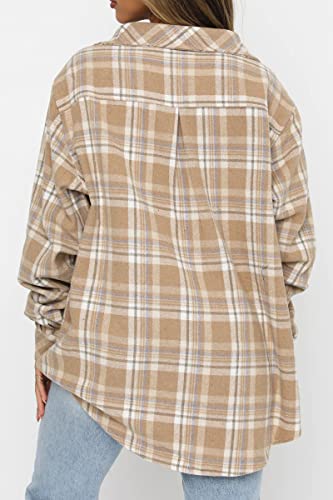 CHYRII Women's Casual Flannel Plaid Shacket Button Down Long Sleeve Shirt Jacket Coats 4