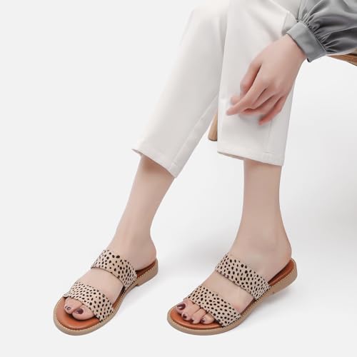 Tilocow Women's Flat Sandals with Rivets Inlaid Slip on Sandals Two Strap Casual Summer Slide Shoes