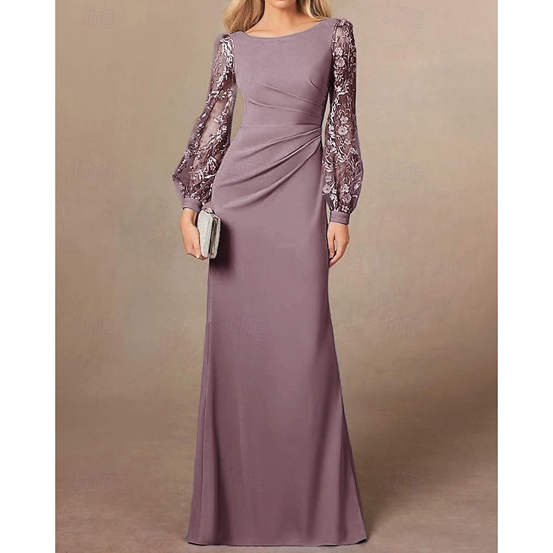 Why Choose DustySheath / Column Mother of the Bride Dress Elegant uncomplicated Minimalist Boat Neck Floor Length Stretch Crepe Long Sleeve with Lace Embroidery?