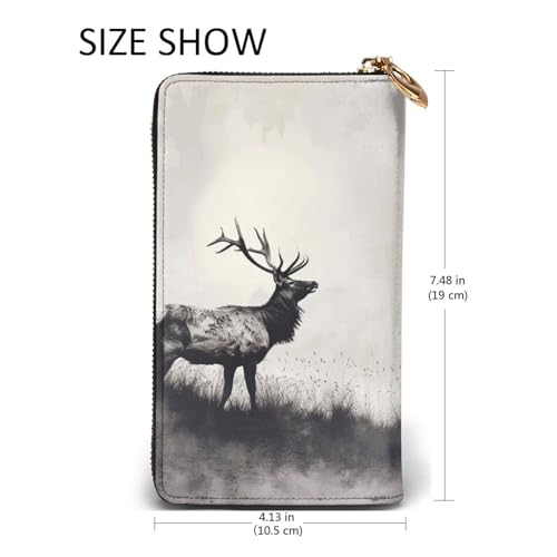 Wild Deer Printed Long Wallet for Women Men Cute PU Leather Wallet with Coin Purse and Credit Card Holder