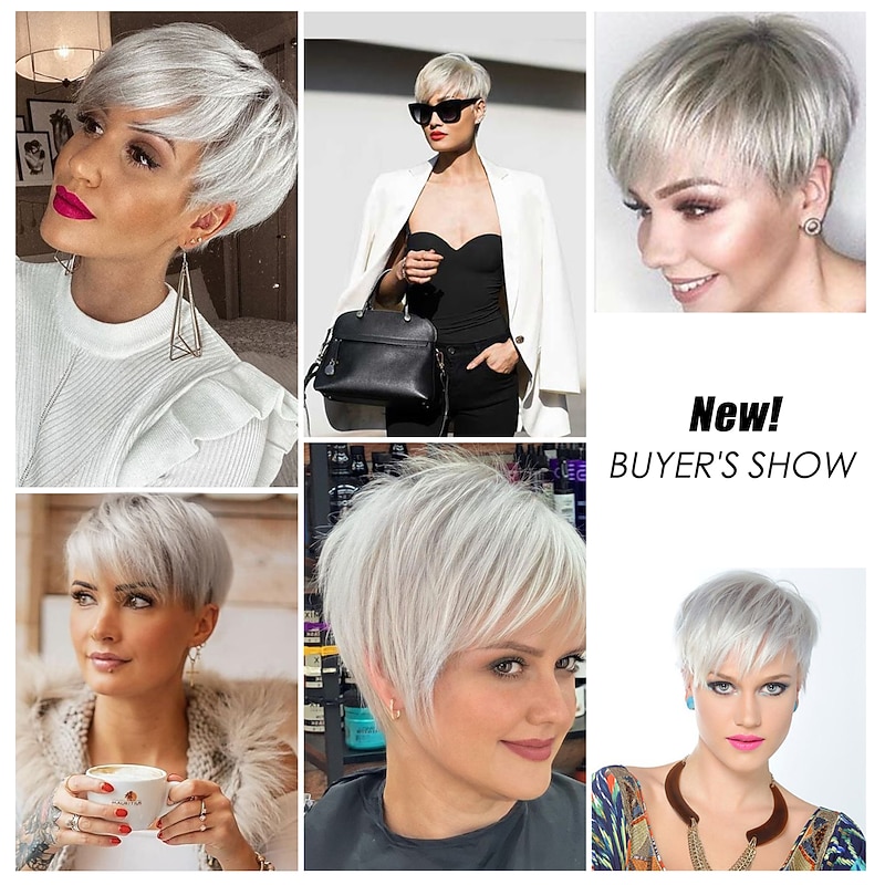 Why Choose Human Hair Blend Wig Short Straight Natural Straight Pixie Cut Side Part Layered Haircut Asymmetrical White Brown Cosplay Curler & straightener Natural Hairline Capless Burmese Hair Chinese Hair?