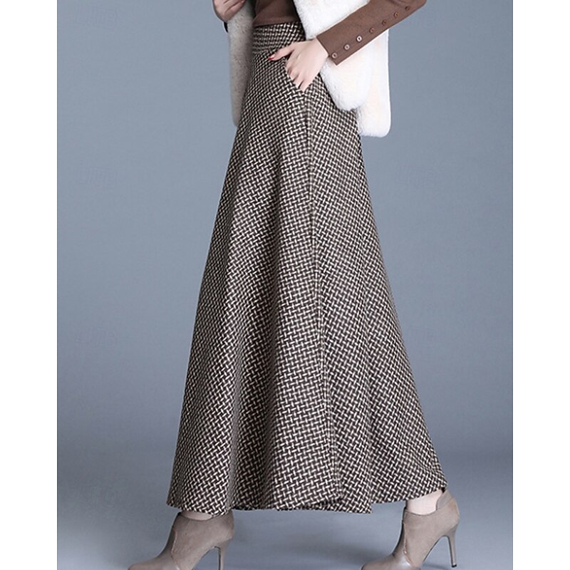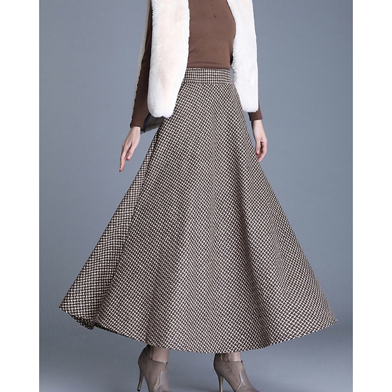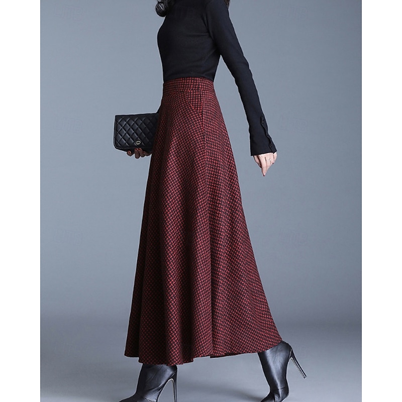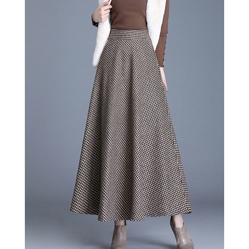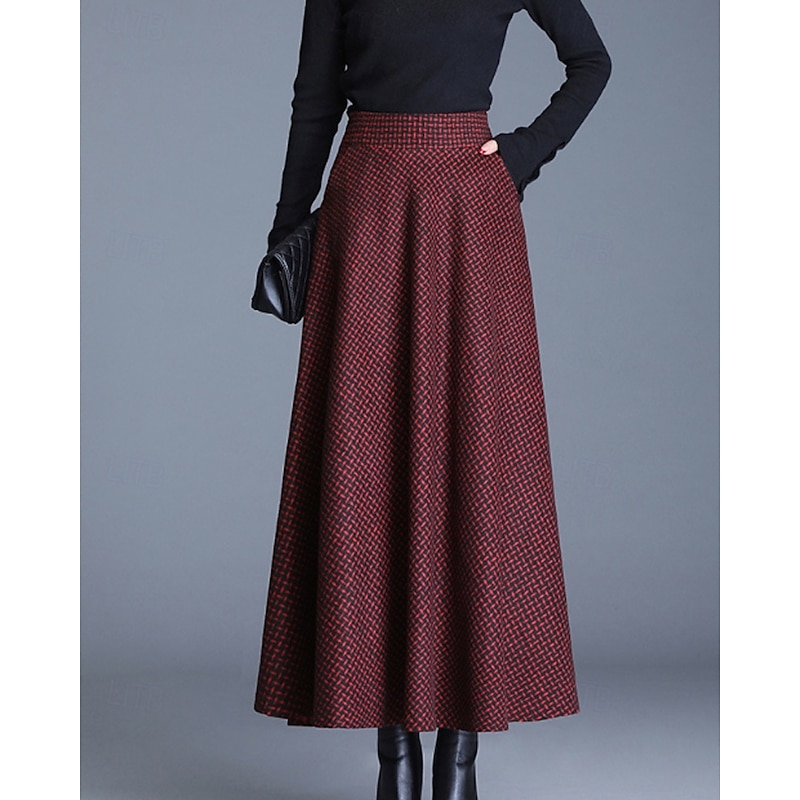 This Women's Skirt Swing Fashion Midi Mid Rise Skirts Plaid Ruched Micro-elastic Street Daily Wine Dark Gray Khaki Light Grey Fall Acrylic combines elegant design with practical functionality. Every detail has been carefully considered to ensure you get the supreme possible experience. The finest construction means this product will serve you well for years to come.
