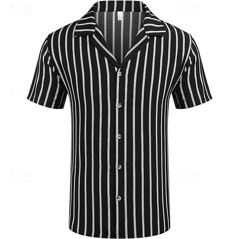 More information about Men's Shirt Summer Shirt Casual Shirt Beach Shirt Button Up Shirt Black Navy Blue Short Sleeve Stripes Camp Collar Vacation Hawaiian Clothing Apparel Polyester Fashion Casual smooth