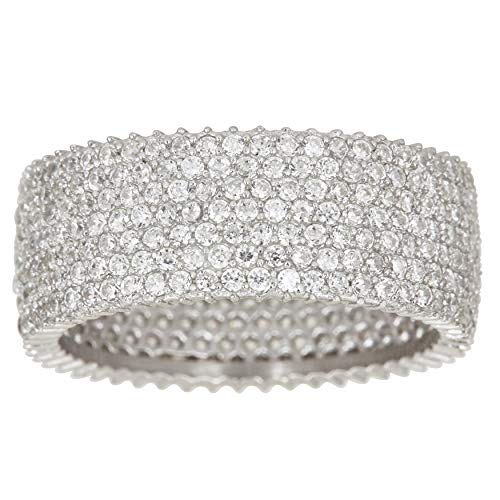 PORI JEWELERS 925 Sterling Silver Eternity Ring 7 Row Cubic Zirconia Micro-pave Set Engagement/Wedding Ring