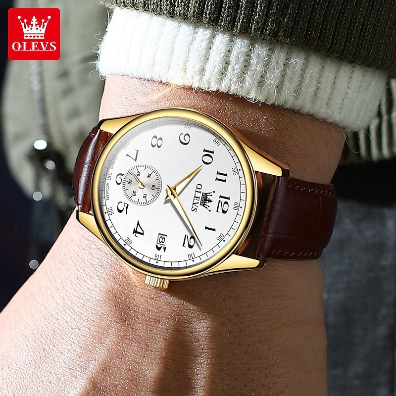 $24.99 - OLEVS Men Quartz Watch Minimalist Fashion Wristwatch Luminous Calendar Waterproof Decoration Leather Watch 2025. Shop for cheap Quartz Watches online? Buy at lightinthebox.com on sale today!