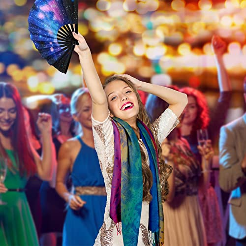Qunclay 2 Pcs UV Glow Large Rave Hand Fan Jacquard Scarf Shawl Pashmina for Women Party Dance on Festivals
