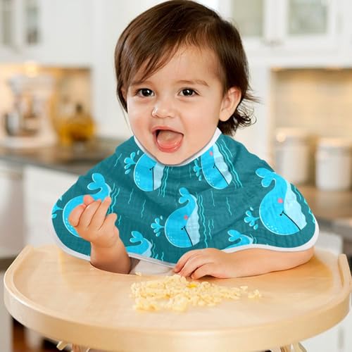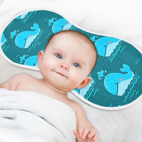 Cartoon Whale Water Teal Baby Burp Cloths Absorbent Cotton Burp Cloths Rags Burping Clothes for Babies Burp Cloth Baby Bibs Washcloths for 22x11IN Newborn Baby Essentials,2 Pack