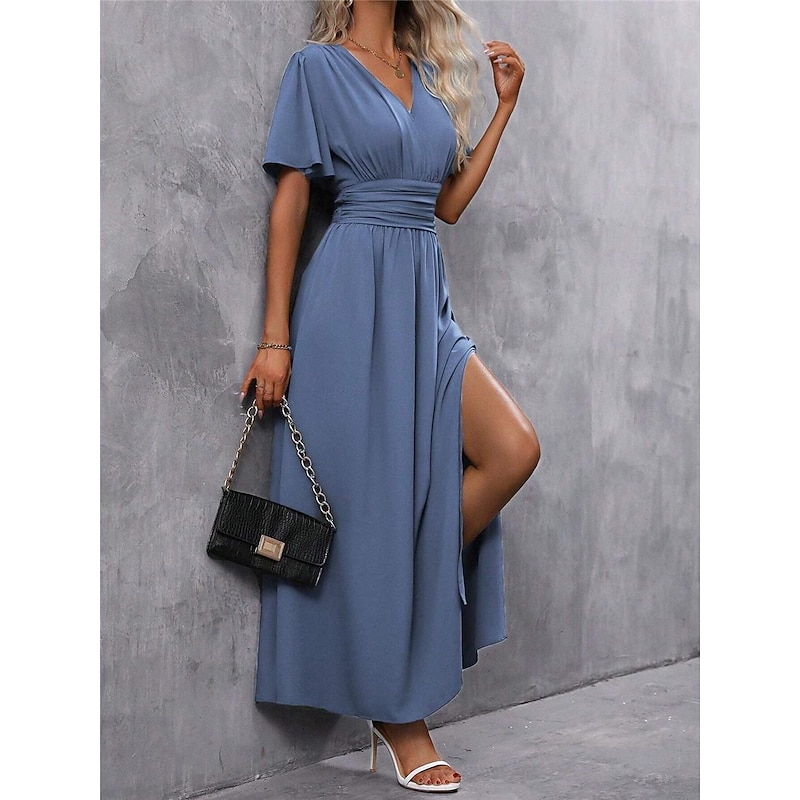 More information about Women's Summer Dress Maxi Dress Split High Waist Wedding Party Elegant Formal V Neck Short Sleeve Blue Color